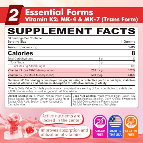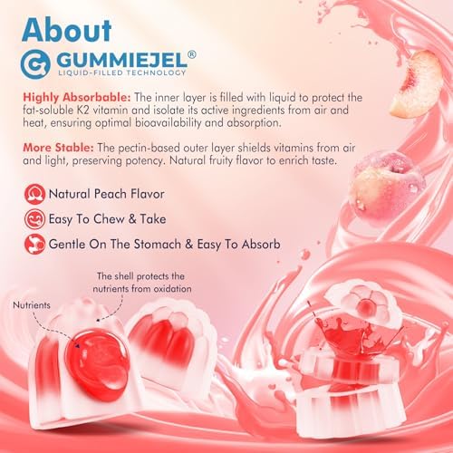 🍑 Full-Spectrum Vitamin K2 with Trans Kind & GummieJel Expertise – Our superior Full-Spectrum K2 Gummies make the most of GummieJel know-how, encapsulating lively substances on the core for superior stability, absorption, and bioavailability. The protecting pectin outer layer and scrumptious pure peach taste guarantee a premium expertise whereas maximizing the efficiency of MK-4 & MK-7. This dual-action K2 components helps optimum calcium utilization,hḙ-ḁṛt, bone energy in its only Trans Kind.