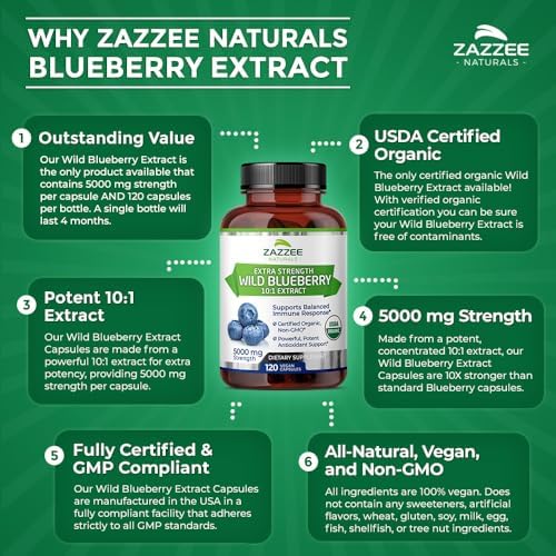OUTSTANDING VALUE: Our Natural Wild Blueberry Extract accommodates 5000 mg energy per capsule, is Licensed Natural AND 120 capsules per bottle – a tremendous worth! A single bottle accommodates a 4 month provide. Evaluate this to different main manufacturers that require 2 capsules per serving, will not be natural, will not be concentrated extracts, and are made with gelatin. Our Blueberry Extract is a cut price not be discovered elsewhere!