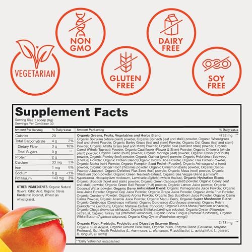 Nice-Tasting Wellness: Don’t compromise on taste when taking your every day diet complement powder. Our crisp and refreshing mango taste doesn’t depart you with the bitter taste and grassy aftertaste you get from different tremendous greens